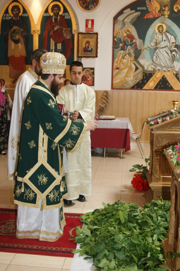 Sărbătoarea Pogorârii Sfântului Duh, 12 iunie 2011, a fost pentru credincioșii din Zaragoza prilej de bucurie duhovnicească, întrucât l-am avut în mijlocul nostru pe Preasfințitul Episcop Timotei al Spaniei și Portugaliei. Mulți credincioși au venit la biserică dis de dimineață pentru a participa la slujba Utreniei și pentru a-l întâmpina pe Preasfințitul. Sfânta Liturghie arhierească a fost încununată de un frumos cuvânt de învățătură al Preasfințitului, din care cei prezenți au reținut îndemnul de a chema și a primi pe Duhul Sfânt în inimile noastre. A urmat slujba Vecerniei plecării genunchilor, cu frumoasele rugăciuni pentru cei vii și pentru adormiți. Deși slujba s-a prelungit mai mult ca de obicei, toți cei prezenți s-au împărtășit de bucuria și binecuvântarea rugăciunii împreună cu părintele episcop Timotei.
