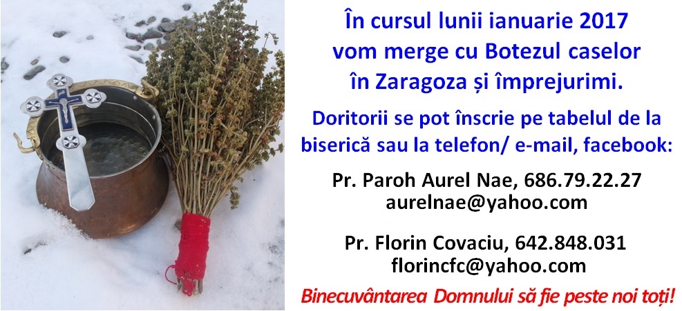Calle Florentino Ballesteros 23, 50013 Zaragoza. Preot Paroh AUREL NAE, tel. 686.79.22.27