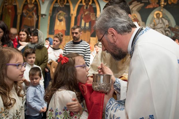 În cursul lunii martie 2018, 18 copii au participat la catehezele predate de Pr. Paroh Aurel Nae și care au avut ca scop înțelegerea de către copii a importanței primei Spovedanii în viața lor. Într-un cadru plăcut, copiii au aprofundat cunoștințele generale despre credința în Dumnezeu, despre Biserica Ortodoxă, despre slujbele Bisericii și îndeosebi Sfânta Liturghie, despre faptele bune și virtuțile creștine. După ultima cateheză, în seara zilei de sâmbătă, 24 martie, copiii s-au spovedit pentru prima dată în viața lor, iar duminică, 25 martie, de Buna Vestire, în cadrul Sfintei Liturghii, copiii s-au împărtășit în mod festiv. Pentru a marca acest moment, Pr. Paroh Aurel Nae a înmânat fiecărui copil participant o diplomă, o carte de rugăciuni și albumul „O duminică la Biserica Ortodoxă” editat de Fraternitatea Ortodoxă din Europa Occidentală.
