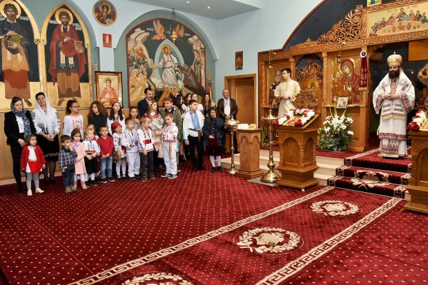 Duminică, 10 noiembrie 2019, Preasfințitul Părinte Episcop Timotei al Spaniei și Portugaliei a slujit Sfânta Liturghie Arhierească în Parohia Adormirea Maicii Domnului din Zaragoza, cu prilejul hramului mic al Parohiei, Sfântul Mucenic Vichentie. În cadrul Sfintei Liturghii, a fost încreștinată prin Sfântul Botez micuța Carla Maria. Preasfințitul Timotei a explicat credincioșilor faptul că Sfintele Taine sunt strâns legate de Sfânta Liturghie și că, în trecut, atât Botezul, cât și Cununia, se săvârșeau în timpul Sfintei Liturghii.