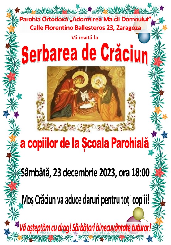 La final, copiii școlii parohiale au susținut un concert de colinde, apoi Părintele Aurel a mulțumit Preasfințitului Părinte Teofil de Iberia pentru bucuria de a fi în mijlocul comunității din Zaragoza la acest praznic deosebit, apoi a urmat o agapă festivă.