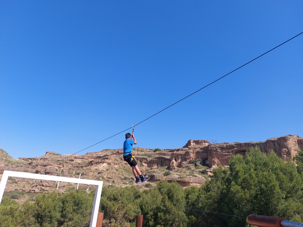 Prima parte a zilei s-a desfășurat în frumosul cadru natural al Parcului La Gabarda, din localitatea Sodeto (Huesca), unde copiii s-au bucurat din plin de activități recreative precum tirolina, tirul cu arcul, tirul sportiv și traseele pe punți suspendate. Aceste provocări au adus multă adrenalină și entuziasm, iar cei mici s-au bucurat de libertatea și distracția oferite de natură, într-un spirit de echipă și prietenie.