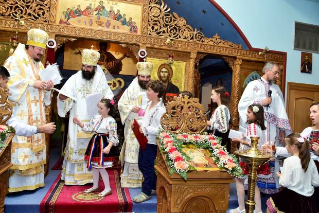 La sfârșitul Sfintei Liturghii, Corul Parohiei a intonat Balada Sfinților Brâncoveni, pregătită în mod special pentru acest prilej. Copiii au oferit ierarhilor desene și felicitări făcute de ei în cadrul activităților de la Școala Parohială.