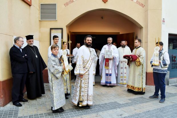 Duminică, 7 octombrie 2018, Parohia Ortodoxă Română Adormirea Maicii Domnului din Zaragoza a îmbrăcat straie de sărbătoare, primind binecuvântarea Sfintei Liturghii Arhierești, cu prilejul împlinirii a 15 ani de la înființare. Bucuria și binecuvântarea au fost întreite, prin prezența, slujirea și cuvântul de învățătură a trei ierarhi: IPS Mitropolit IOSIF al Mitropoliei Ortodoxe Române a Europei Occidentale și Meridionale, PS Episcop TIMOTEI al Episcopiei Ortodoxe Române a Spaniei și Portugaliei și PS Episcop NESTOR de Corsun (Patriarhia Rusiei). La prima oră a dimineții, ierarhii au fost întâmpinați la intrarea în biserică de preoții și credincioșii prezenți și au fost salutați de Arhiepiscopul Vicente Jimenez Zamora al Arhiepiscopiei Romano Catolice din Zaragoza, precum și de dl. Alexandru Ioan Steriu, consulul României la Zaragoza.
