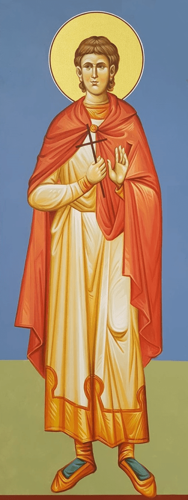Deci, a mai gândit încă un vicleşug. A poruncit să pregătească un pat frumos, pe care, acoperindu-l cu aşternuturi moi, să pună pe sfântul în el. Şi a orânduit slugi care să-i şteargă sângele, să-i lege rănile şi să-i facă slujbă cu vicleşug, prefăcându-se că şi cum le-ar fi milă de dânsul. Apoi, sărutându-i picioarele, îl rugau să se miluiască singur şi să nu se dea pe sine spre munci mai mari, ci să facă voia împăratului.